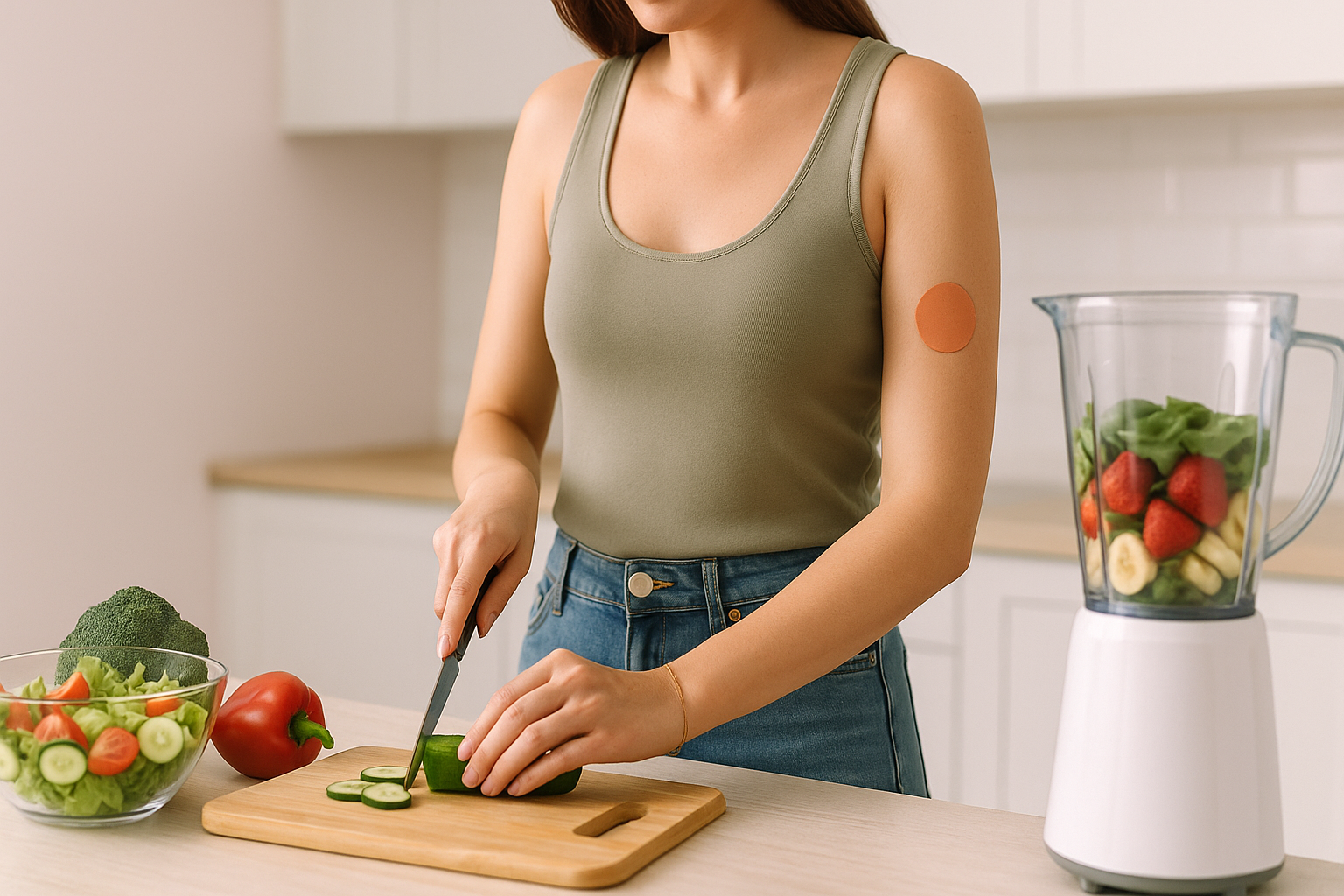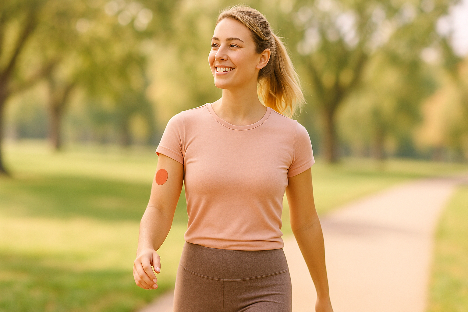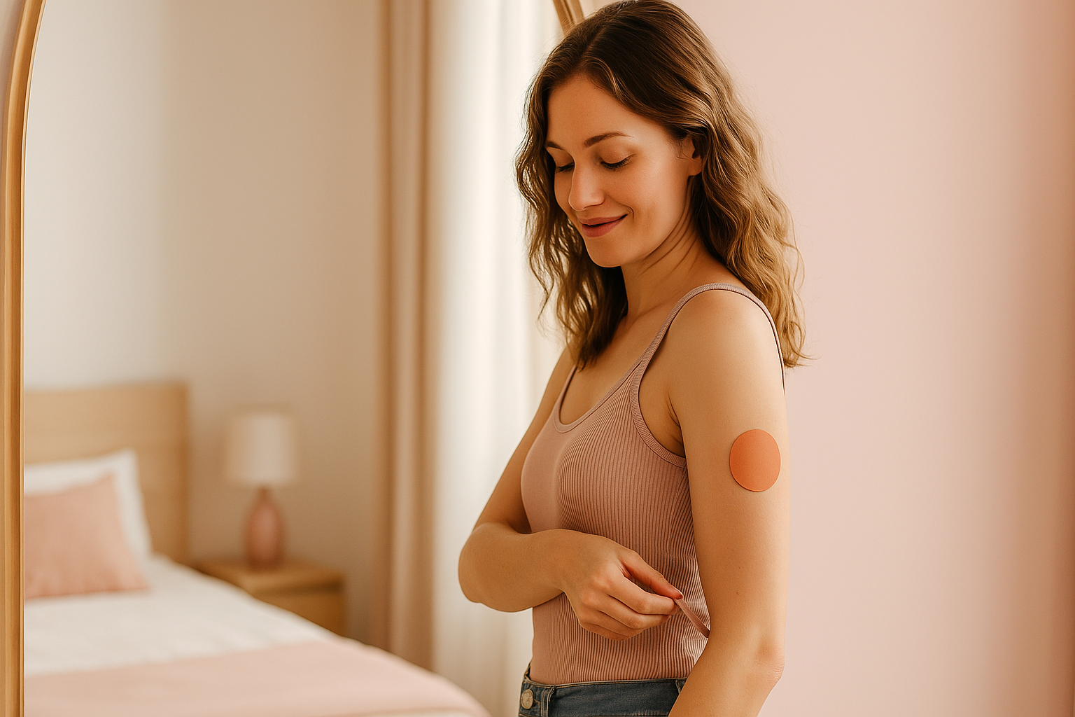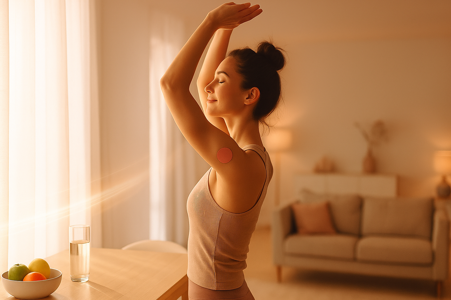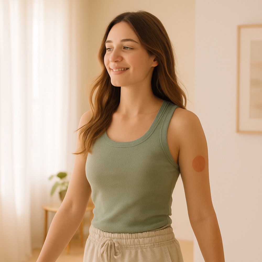 Posiziona un Velora Patch sulla pelle pulita, preferibilmente al mattino. È sottile, confortevole e rimane invisibile sotto i vestiti.